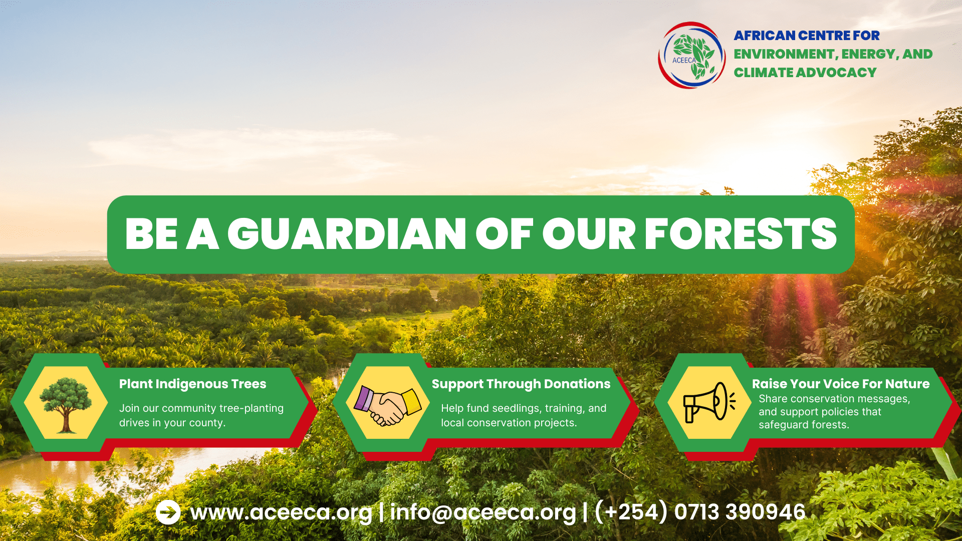 Kenya’s indigenous forests are invaluable assets—rich in biodiversity, vital for water security, and essential for climate stability. ACEECA’s conservation efforts offer hope for restoring and protecting these fragile ecosystems through community involvement, policy advocacy, sustainable practices, and science-based interventions. By working together, we can preserve Kenya’s natural heritage and secure a greener, healthier future for generations to come.